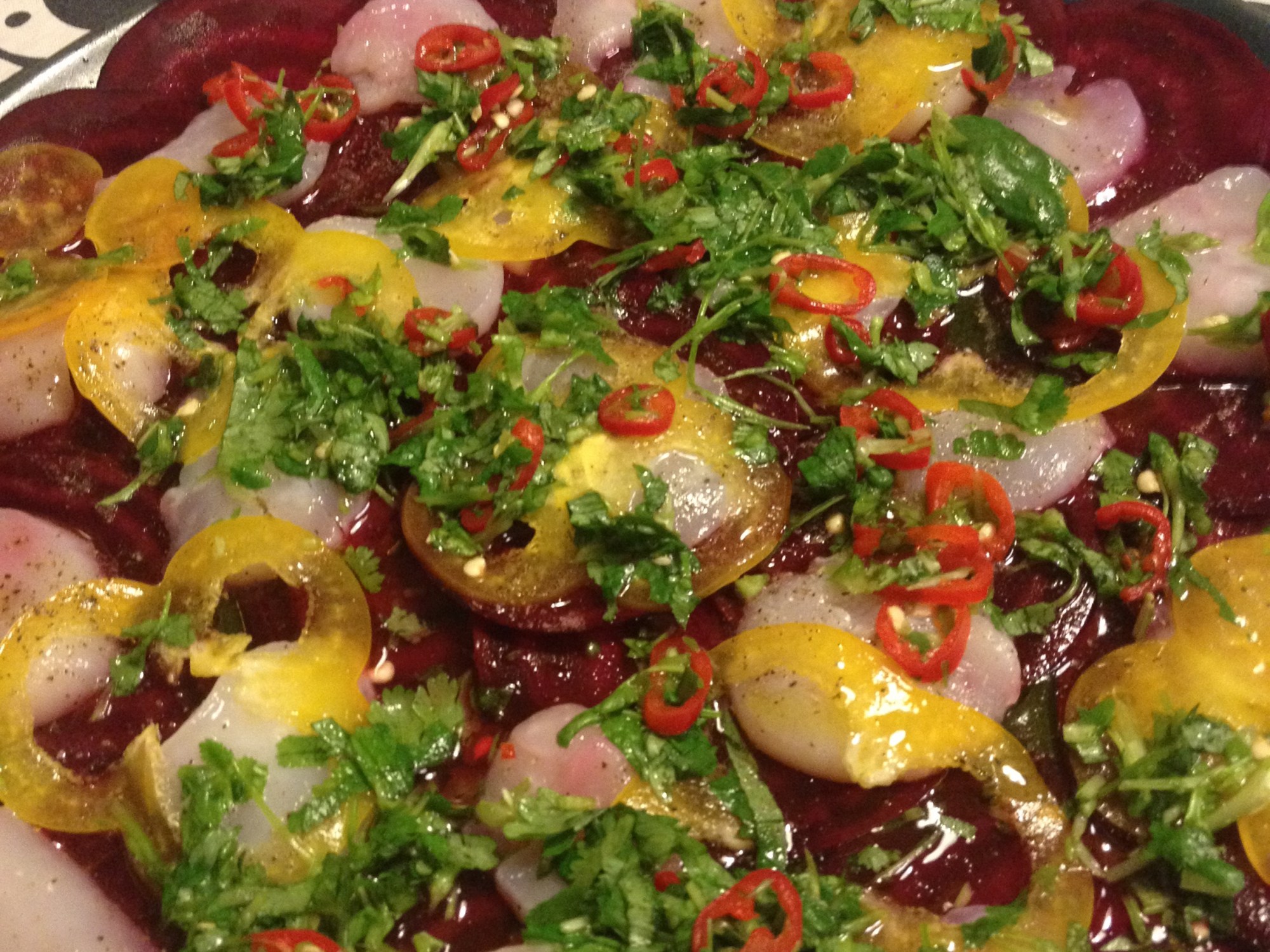 Men detta blir man verkligen glad av. Är väl egentligen en variant på Ceviche, men upplagt på stort fat.